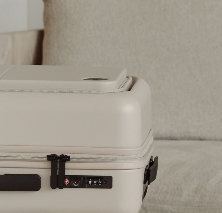 No suitcase is meant to look brand new forever, but Monos suitcases are easy to maintain as they acquire air miles. Each piece of luggage comes with a specialized scuff eraser to keep the shell in great condition over time. A damp cloth and mild soap are recommended for a general clean after long journeys, and a soft cloth can help brush out any dust or dirt from the interior.
