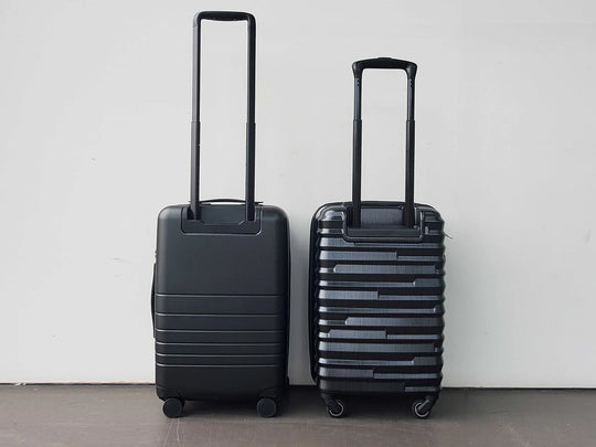 Monos (left) is committed to creating premium luggage with no compromises. See the up-close comparison photos.